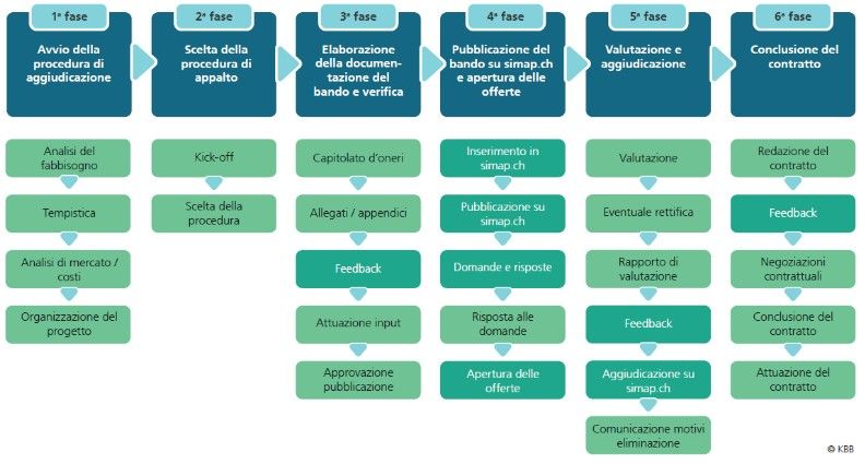 Ablauf des Beschaffungsprozesses aus «Das öffentliche Beschaffungswesen auf einen Blick» von Aus- und Weiterbildung KBB Misure di carattere generale